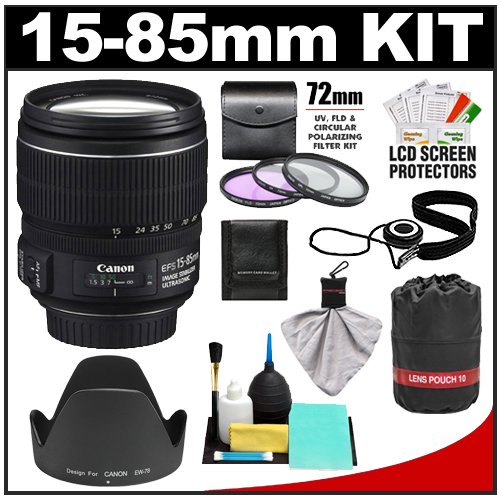 SPECIAL PRICE Canon EF-S 15-85mm f/3.5-5.6 IS USM Zoom Lens with 3 UV/FLD/CPL Filters + Hood + Pouch + Accessory Kit for EOS 60D, 7D, Rebel T3, T3i, T4i Digital SLR Cameras