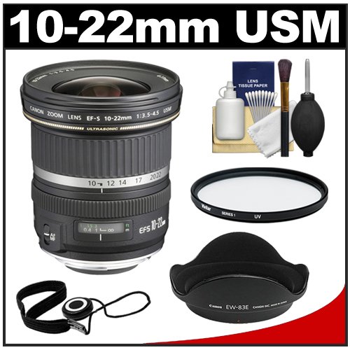 SPECIAL OFFERS Canon EF-S 10-22mm f/3.5-4.5 USM Ultra Wide Angle Zoom Lens + UV Filter + EW-83E Hood + Accessory Kit for EOS 60D, 7D, Rebel T3, T3i, T4i Digital SLR Cameras