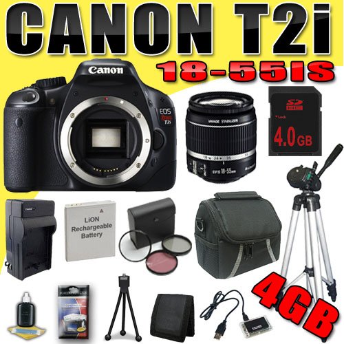 - Canon EOS Rebel T2i 18MP Digital SLR Camera w/ Canon EF-S 18-55mm f/3.5-5.6 IS Lens Brand New USA w/Manufacturer’s Supplied Accessories